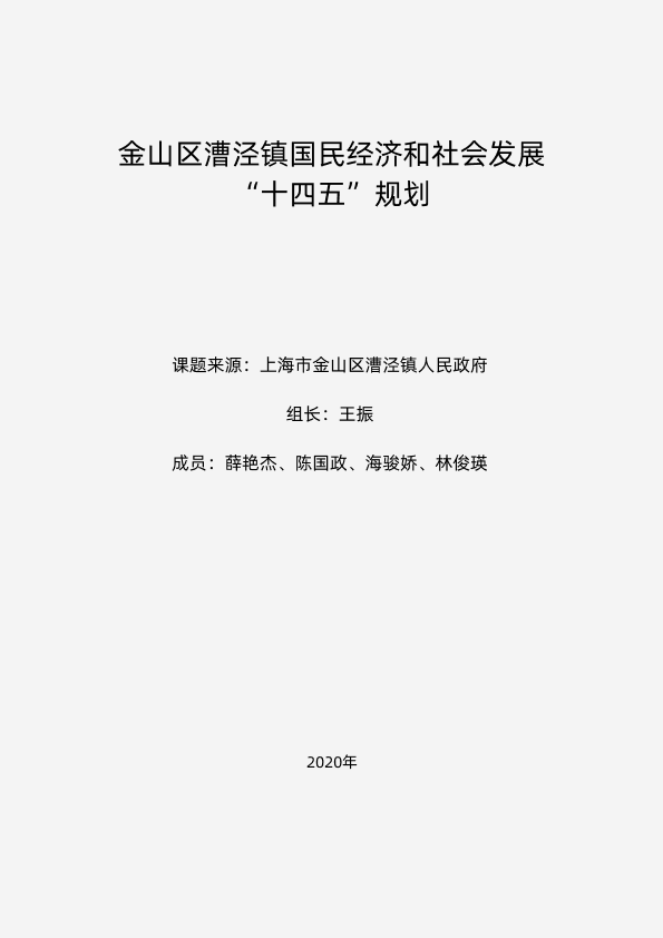 金山区漕泾镇国民经济和社会发展“十四五”规划