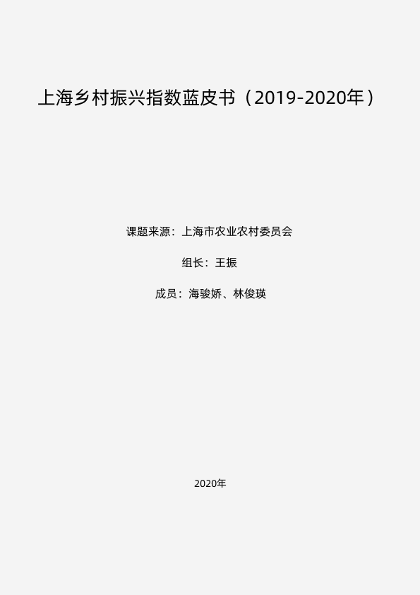 上海乡村振兴指数蓝皮书(2019-2020年)