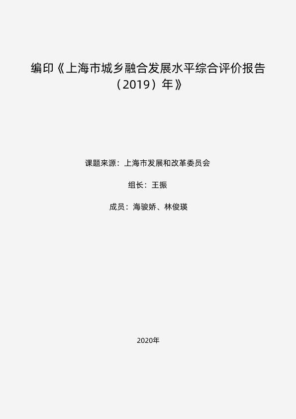编印《上海市城乡融合发展水平综合评价报告(2019)年》