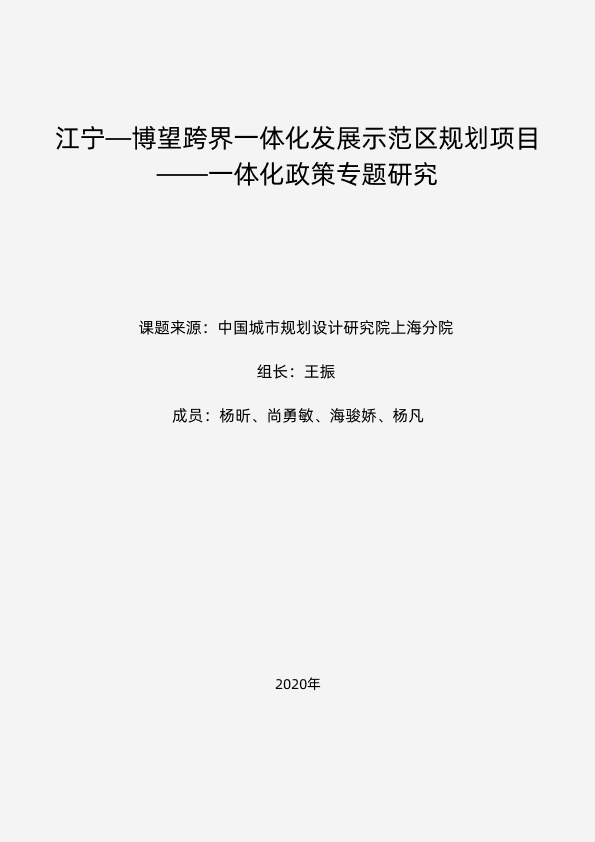 江宁—博望跨界一体化发展示范区规划项目——一体化政策专题研究