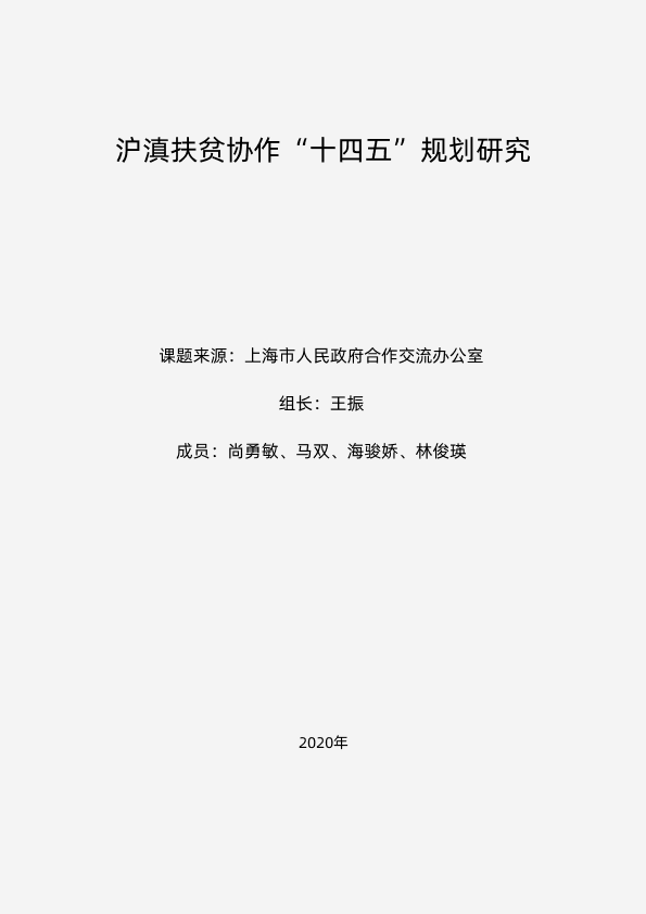 沪滇扶贫协作“十四五”规划研究