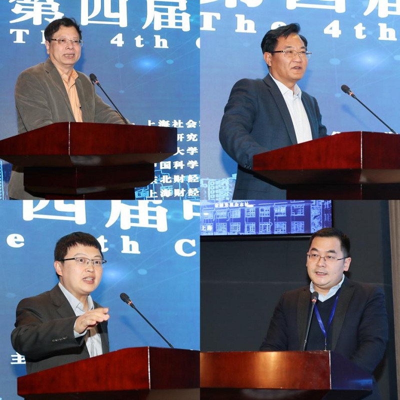 开幕式致辞:干春晖、王振、汪寿阳、朱平芳(自左向右)