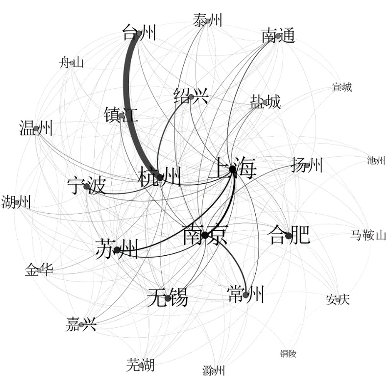 图2 长三角中心区27个城市高端装备制造业专利合作网络拓扑图