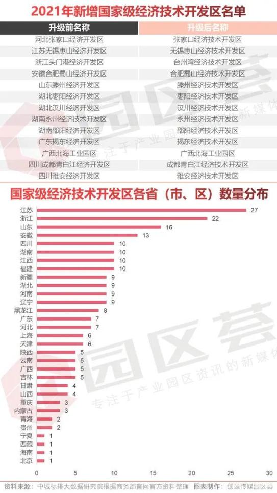 2021年新增国家级经济技术开发区及各省(市、区)数量分布(图片来源:园区荟萃文化传媒中心)