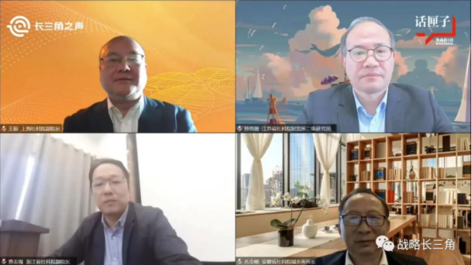 上海电台长三角之声主持人江冉和张新共同对话上海社会科学院副院长王振、浙江社会科学院副院长查志强、江苏社会科学院二级研究员孙克强、安徽社会科学院城乡所所长孔令刚,详细探讨进博会的溢出效应。