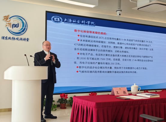 2023年2月28日上午,我院副院长、信息研究所所长王振研究员应浦东新区政协邀请,在2023年度观澜讲堂第二期上做了题为《数字化绿色化协同发展的战略背景与新机遇》的主旨报告,报告分析了数字化绿色化协同发展的战略背景、战略内涵,并对数字化绿色化协同发展带来的五大新赛道新机遇做了重点讲解,刷新了与会者对这个领域的认知。此次讲堂的主题为“刷新:汇侨海力量 聚引领发展”,主旨报告后,围绕“刷新”主题,进行了圆桌讨论,上海枫联股权投资管理有限公司董事长丁瑜、上海胡姬港湾文化传播公司董事长袁民、上海幻维数码创意科技股份有限公司执行董事何文意、纽脉医疗创始人、董事长兼首席执行官虞奇峰四位委员就创新创业的“刷新”经历与未来,进行了分享。本次讲堂由浦东新区政协港澳台侨委员会主办,新区侨联和致公党界别协办、区政协浦东侨界委员工作室承办。区政协党组副书记、副主席王小君,区政协党组成员、副主席诸惠华,区政协党组成员、秘书长杨晔参加讲堂活动。