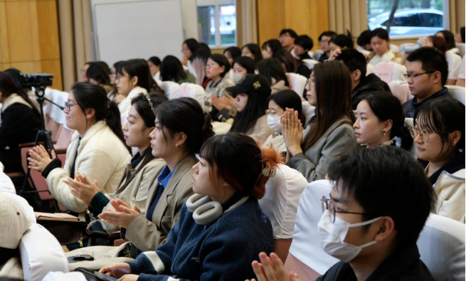 讲座临近尾声,王振与同学们进行了互动交流。同学们就环境保护、城乡差距等问题进行了讨论。王振告诉大家,“在未来产业、新赛道、新动能等方面,长三角最有条件也最有可能做成,作为长三角人,我们要看到自己的优势、看到自己的使命”。