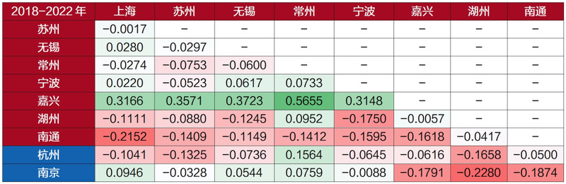 南京与杭州和上海大都市圈在战新产业的分工阶段也有所不同。南京在多个战略新兴产业与上海大都市圈紧密协同,例如在汽车、化工产业、通用设备制造和电子信息产业,均有多个城市与南京的区域分工指数下降,产业链内分工趋势显著;杭州主要与省内城市发生产业转移,例如与湖州在化工和电气机械、与嘉兴在汽车、电子信息,与宁波在电气机械产业的分工指数均有下降。