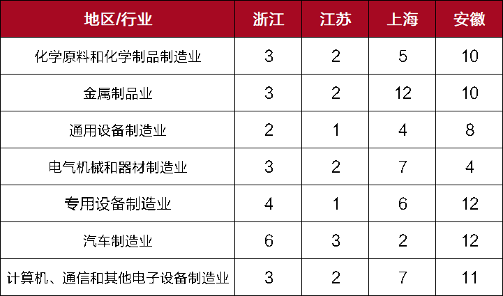 今年是《长江三角洲区域一体化发展规划纲要》发布的第五年,也是长三角一体化走向更深层次更宽领域的重要年份。4 月 30 日召开的中共中央政治局会议专门审议了《关于持续深入推进长三角一体化高质量发展若干政策措施的意见》,并特别指出“推动长三角一体化发展是以习近平同志为核心的党中央作出的重大战略决策”。当前长三角在全国经济顶梁柱的地位凸显,一季度在全国GDP占比达到24.8%,较上年同期提升0.3个百分点。与京津冀、粤港澳大湾区相比,长三角经济体量更大、腹地更为广阔,但由于三省一市存在行政壁垒,产业分工合作激励机制有待提升,仍存在竞争大于合作的现象。此次政治局会议指出,要推动长三角一体化发展取得更大突破,上海市要更好发挥带动作用,江苏、浙江、安徽三省要各扬所长。在此背景下,本文对三省一市的规上制造业数据进行重点分析,并以上海大都市圈九市为案例,自上而下对长三角区域产业发展、协同和转移情况进行分析总结,结合现状及趋势提出我行经营策略。