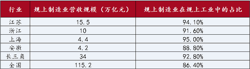 今年是长三角一体化走向更深层次更宽领域的重要年份。4 月 30 日召开的中共中央政治局会议指出,“推动长三角一体化发展是以习近平同志为核心的党中央作出的重大战略决策”“要推动长三角一体化发展取得更大突破”。在此背景下,研究院将围绕长三角区域经济产业开展系列研究。本篇作为系列报告的首篇,从规上制造业数据着手,通过跨区域比较分析,总结梳理长三角三省一市的产业协同与转移趋势。