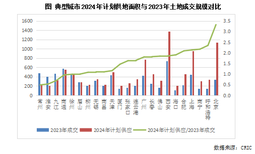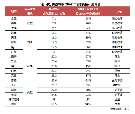 当然,考虑到当前市场下行的大环境,即使上海、合肥这样的去化周期处于较为合理水平的城市,也在主动收缩宅地供应量。典型如合肥,2024年宅地计划供应量仅389公顷,较2023年540公顷降幅高达28%。